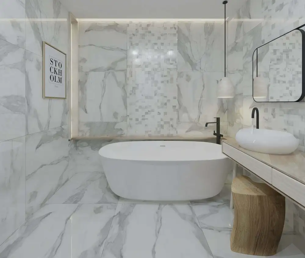 Marble gives softer veining and a classic, formal tone. Granite is harder and more scratch resistant, which suits service corridors and outdoor zones. Porcelain mimics stone well, resists stains strongly, and comes thin for light structures. Yet porcelain lacks the cool touch and depth of real marble.