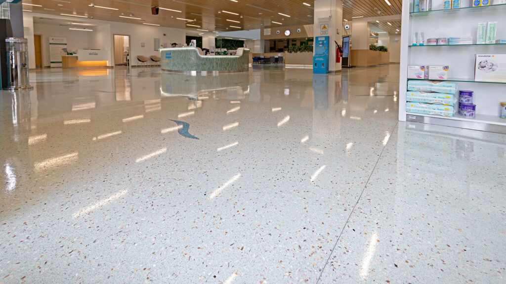 Clinics, pharmacies, and schools need hygienic, low-maintenance floors. Terrazzo’s seamless nature helps reduce grime traps. Staff mop quickly, and scheduled sealing maintains protection. With light colors, you improve visibility for inspections. This supports patient confidence and student safety while controlling cleaning costs across large facilities.